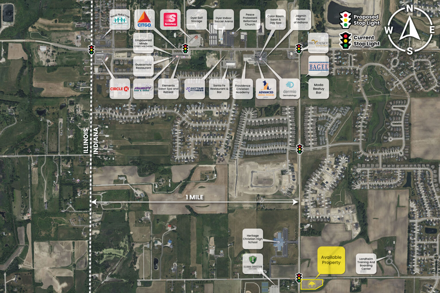 • Prominent frontage and visibility along Calumet Avenue, a central north–south corridor, and 109th Avenue